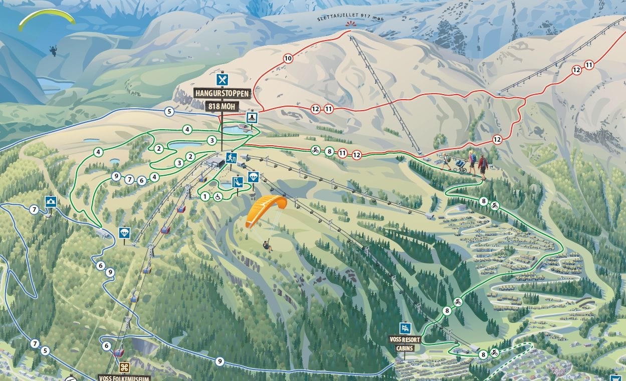 Gondolen tek deg frå Voss Stasjon (56 moh) til Hangurstoppen (820 moh) på under 9 minutt. Hangurstoppen er eit ypperleg startpunkt for vandring i fjellet, anten ein ynskjer korte eller lange turar.