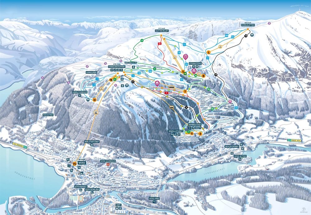 - Hangurstoppen – located at the top station of the gondola, just below Hangurstoppen Restaurant.